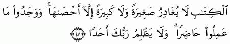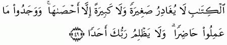 الآية رقم {49} من سورة ( الكهف)