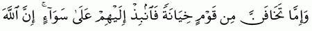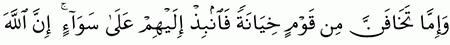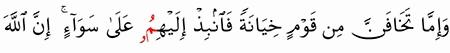 الآية رقم {58} من سورة ( الأنفال)