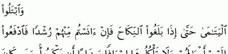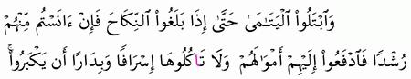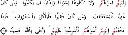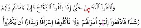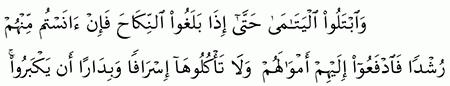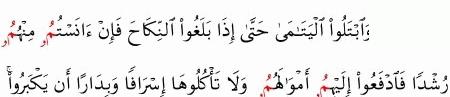 الآية رقم {6} من سورة ( النساء)