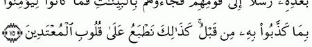 الآية رقم {74} من سورة ( يونس)