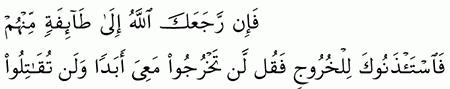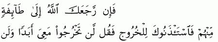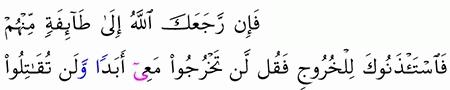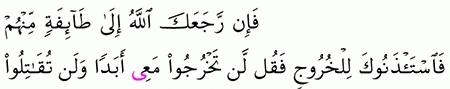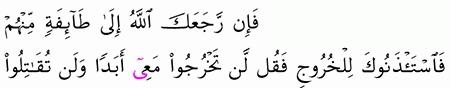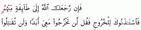 الآية رقم {83} من سورة ( التوبة)
