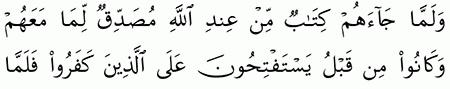 الآية رقم {89} من سورة ( البقرة)
