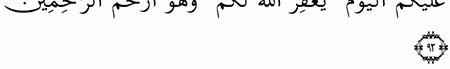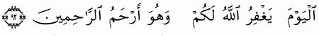 الآية رقم {92} من سورة ( يوسف)