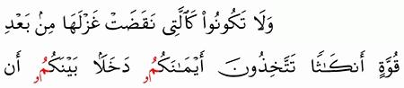 الآية رقم {92} من سورة ( النحل)